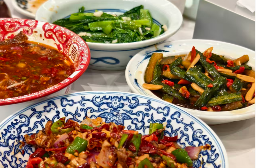 欧记大排档的菜品中不少是鲜辣的下饭菜。(图/叶橙子 摄)