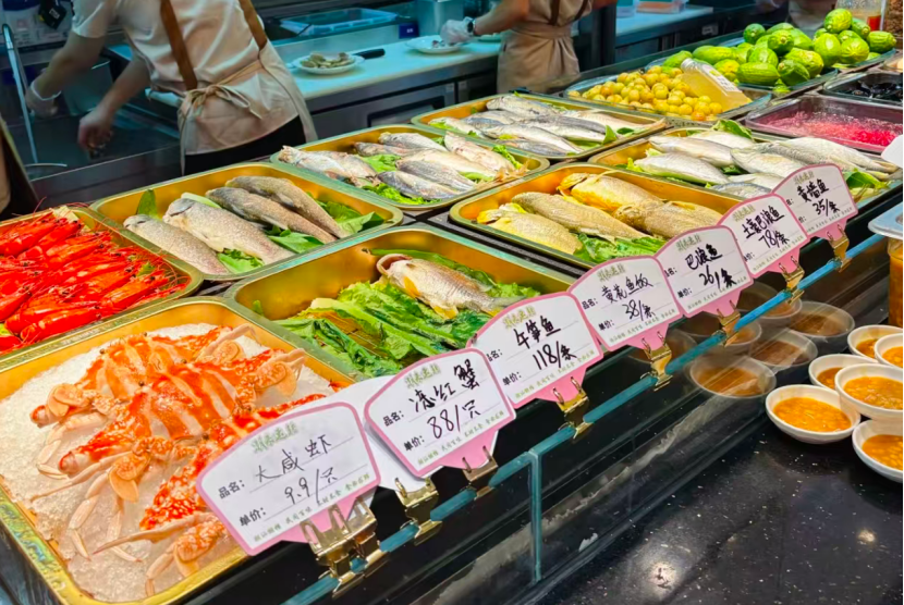 可以看出,这一模式借鉴了沿海城市海鲜排档的自选现捞做法。