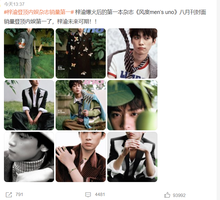 当事情发生后,我们可以看到“梓渝开始掉粉”话题登上热搜,所以看到梓渝的杂志即将开售时,大部分粉丝是非常担心的,因为杂志销量的高低,对梓渝是十分重要的。
